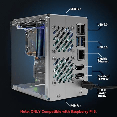 • Enhanced Functionality and Safety: The Pironman 5 secures your Raspberry Pi 5 with features like safe shutdown, customizable RGB LEDs, HDMI ports, an IR receiver, and an external GPIO extender, enhancing functionality and connectivity. The manufacturer offers comprehensive technical support, including online courses and video tutorials, ensuring users can easily assemble and use their Pironman 5 with confidence