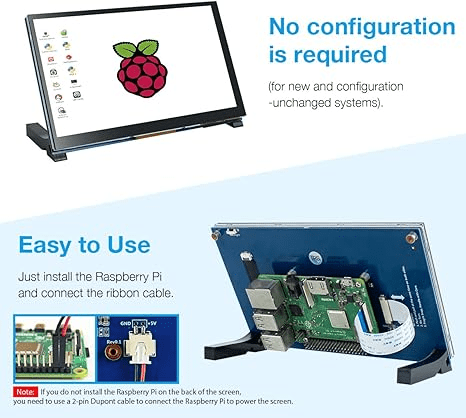 • 7 inches, 800×480 pixels, IPS type, wide viewing angle, capacitive touchscreen, enjoy smooth touch response and excellent clarity for all your Raspberry Pi projects.