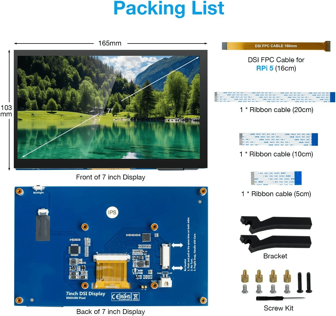 7 Inch Touchscreen IPS DSI Display Compatible with Raspberry Pi 5/4/3